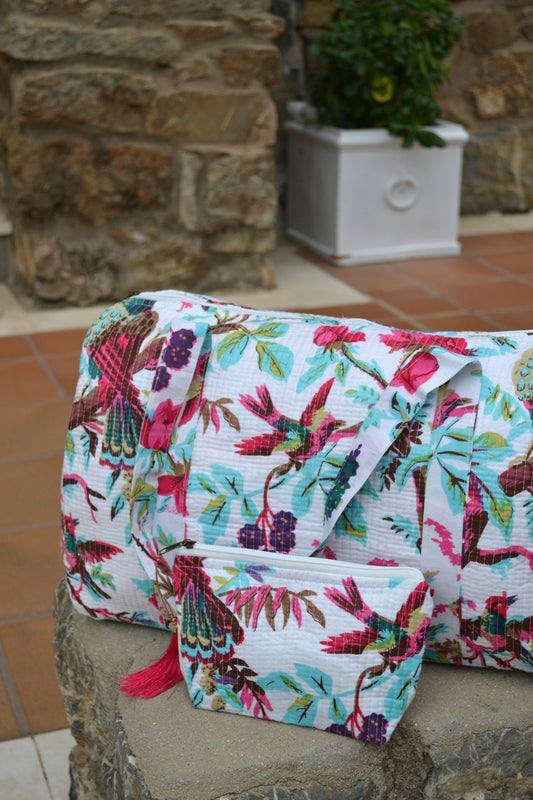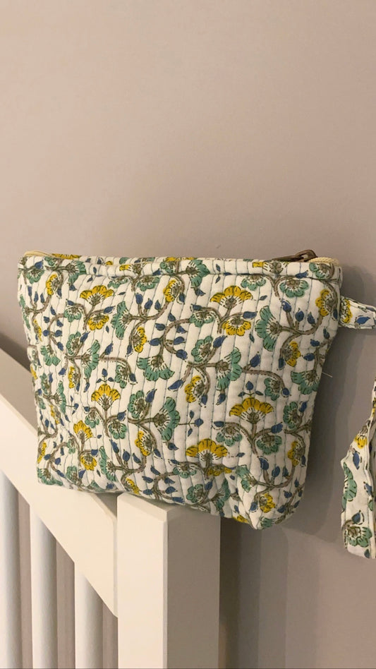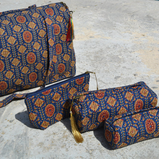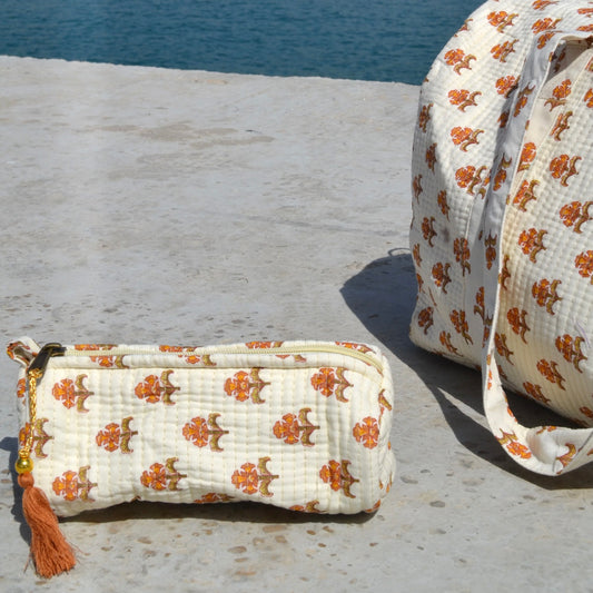 Kulturbeutel aus Baumwolle mit Blockdruck (3 Größen)